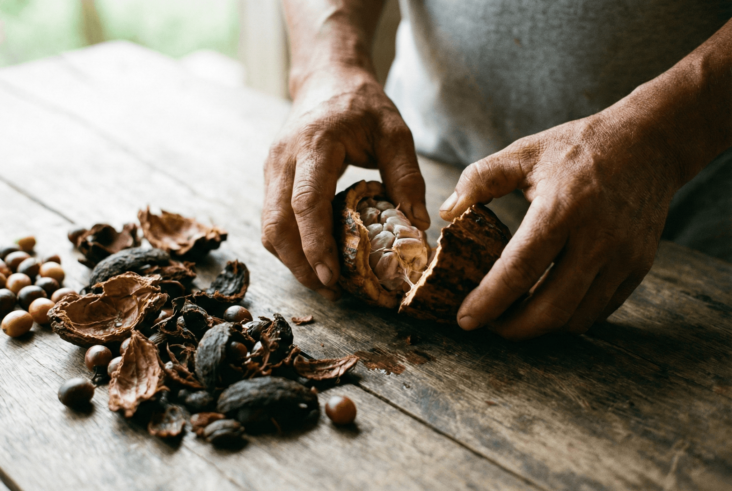 Whenever possible, we valorize agricultural by-products such as cacao husks or fruit seeds — extending the lifecycle of raw materials while maintaining professional performance standards.